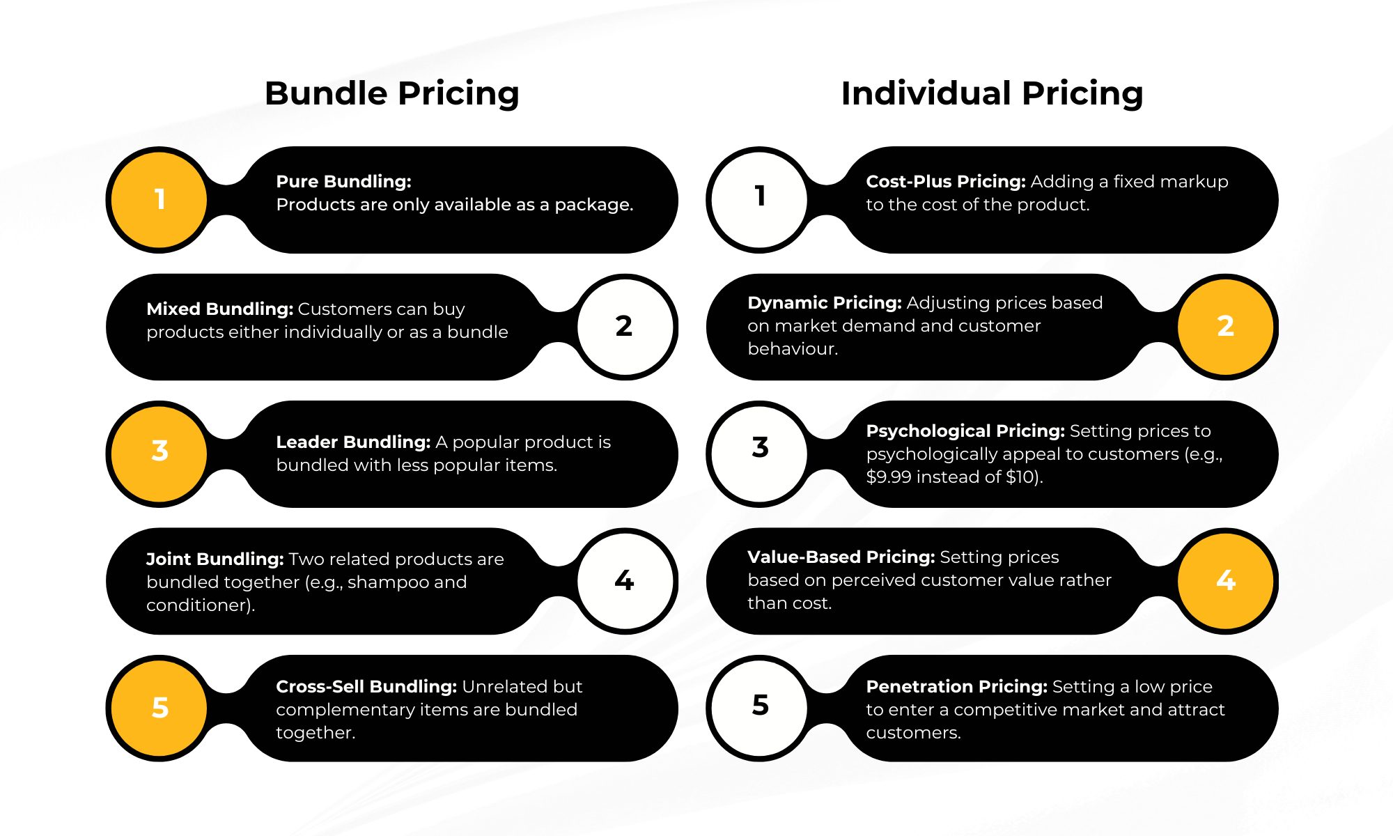 Individual product pricing sets a price for each item independently. This approach allows for more straightforward pricing and easier adjustments based on market demand.