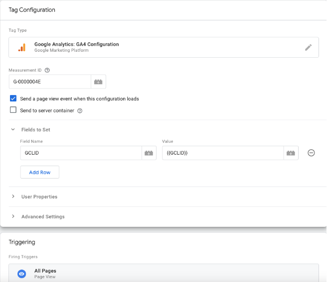 This tells GA4 to capture the GCLID from the URL and send it to GA4.