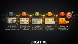 - Lack of clear trust signals such as SSL certificates, guarantees, and policy reassurance