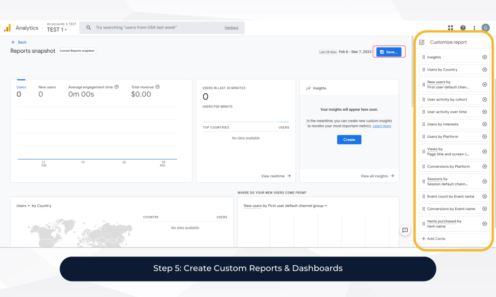Finally, you can create custom reports and dashboards to analyse your eCommerce data in GA4. Custom reports and dashboards allow you to visualise your data in a way that’s meaningful for your business.