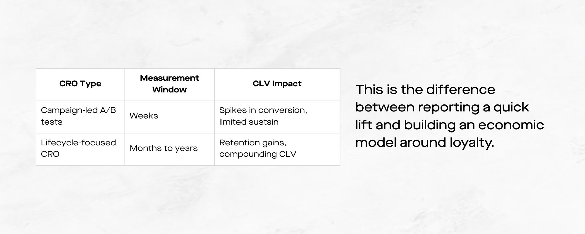 When CRO extends beyond conversion, it becomes a lever for lifetime economics. This is where CRO to boost customer lifetime value delivers outsized returns.