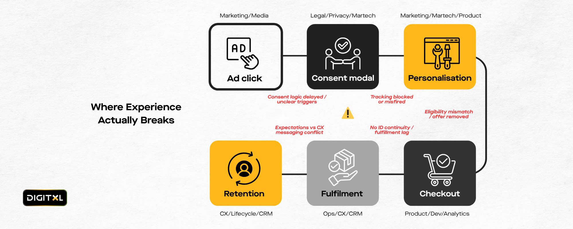 Because experience doesn’t live entirely in one team’s line of sight. It lives in the grey — between what’s owned, what’s inherited, and what no one flags until it impacts someone downstream.
