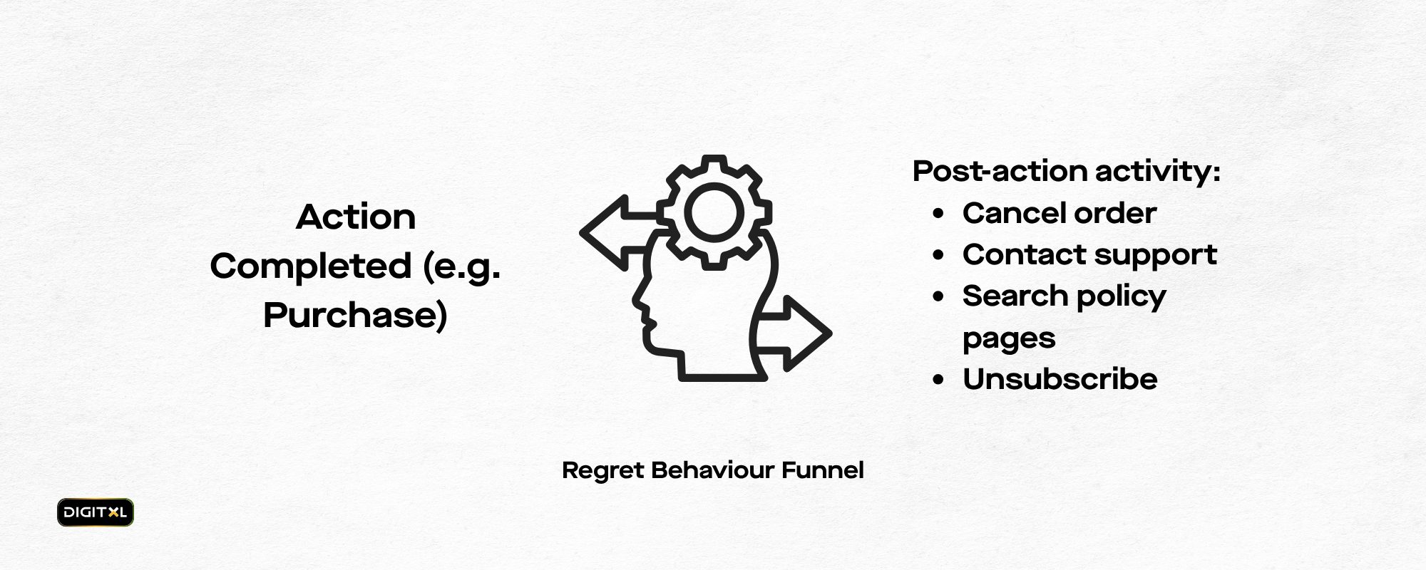 - Regret behaviour: cancellations, returns, unsubscriptions shortly after action